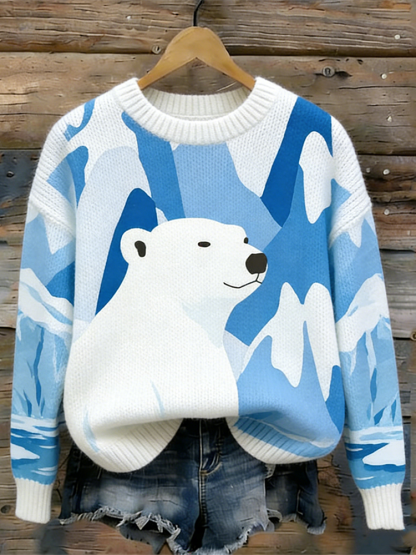 Retro Polar Bear Pattern Round Neck Casual Sweater