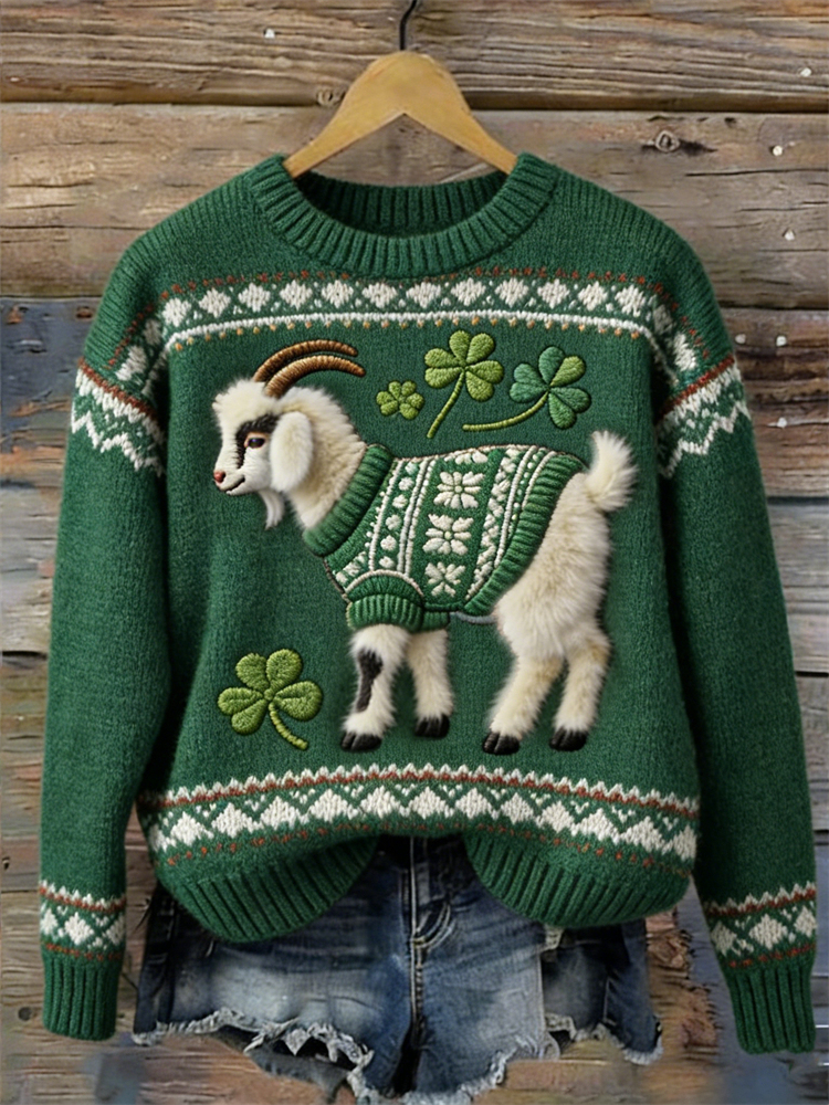 St. Patrick's Day Goat Shamrocks Cozy Knit Isle Sweater