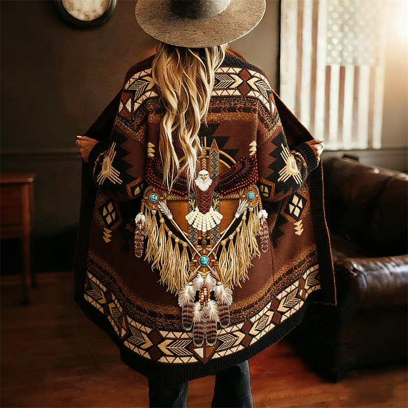 Vintage Eagle Western Ethnic Aztec Cozy Knit Cardigan