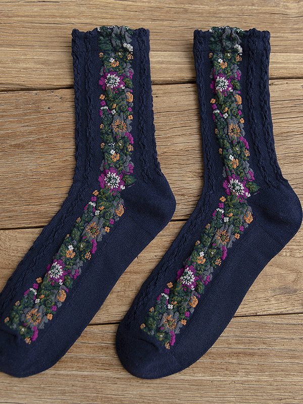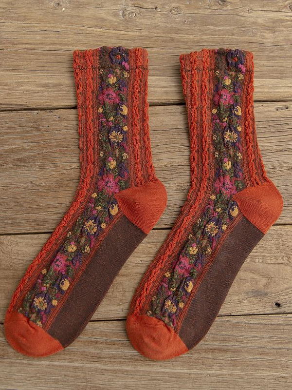 Vintage Floral Jacquard Cozy Socks