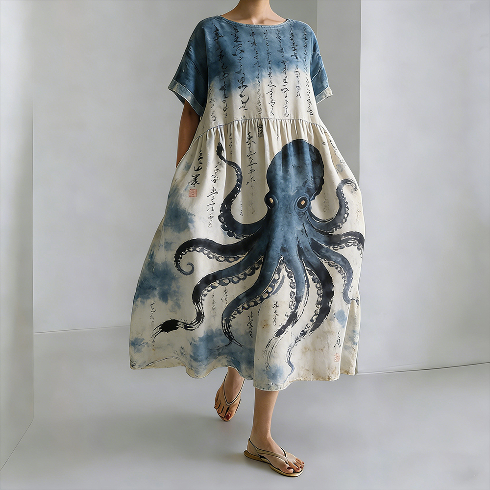 Vintage Japanese Art Octopus Art Tie-dye Dress