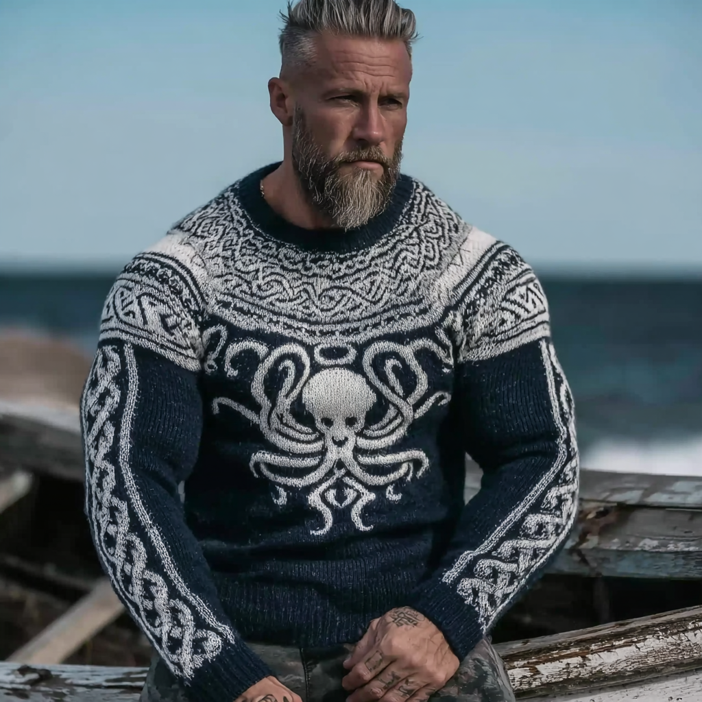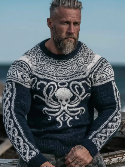 Vintage Viking Celtic Style Octopus Pattern Men's Sweater