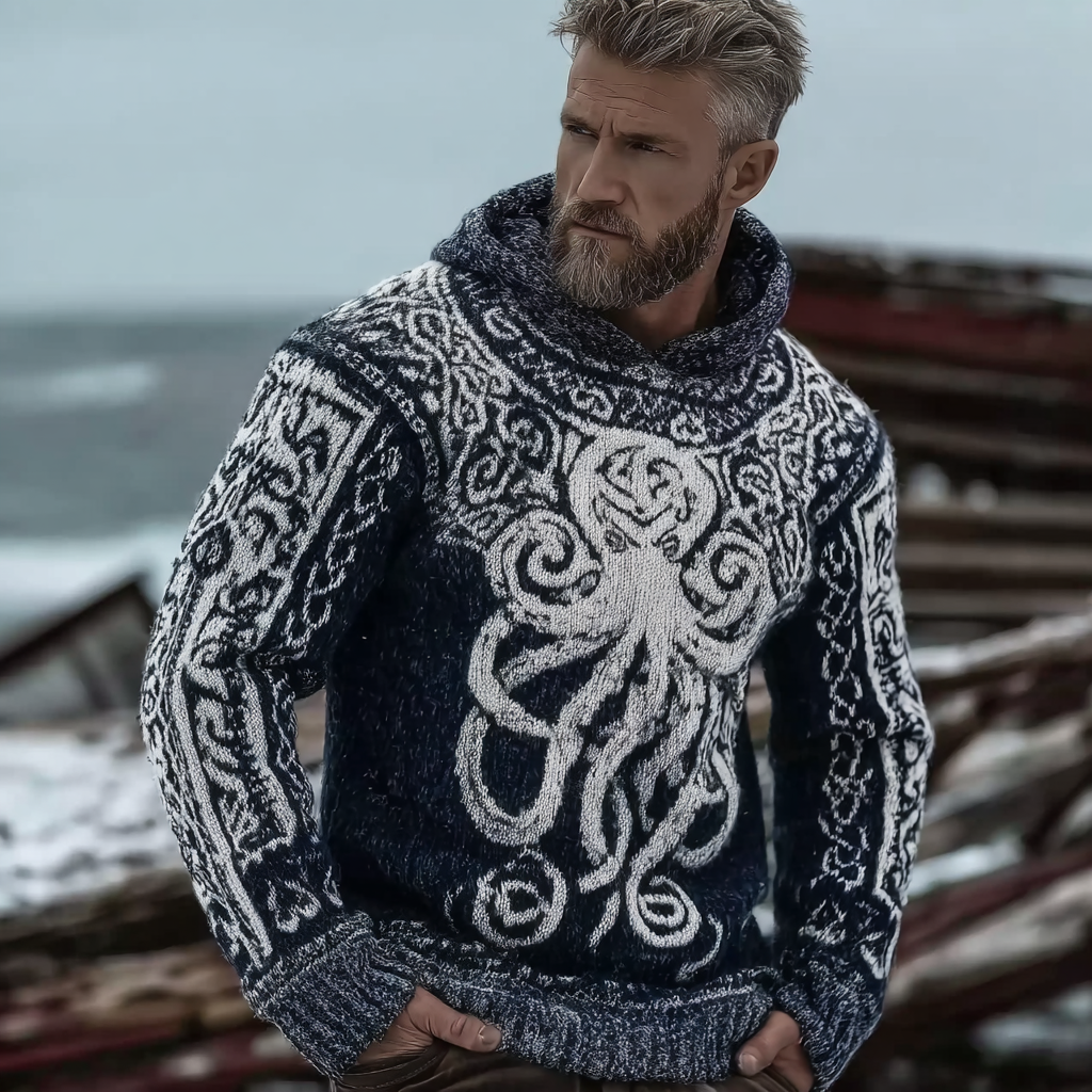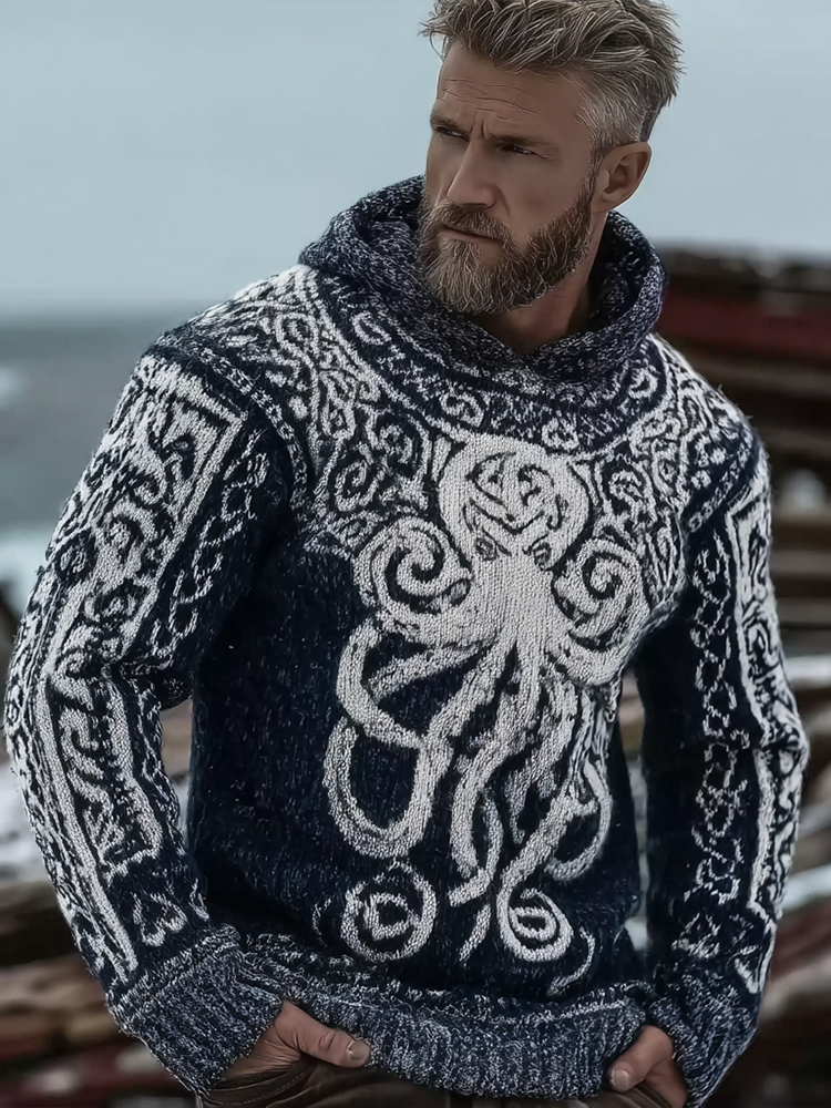 Vintage Viking Celtic Style Octopus Pattern Men's Sweater