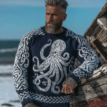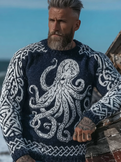 Vintage Viking Celtic Style Octopus Pattern Men's Sweater
