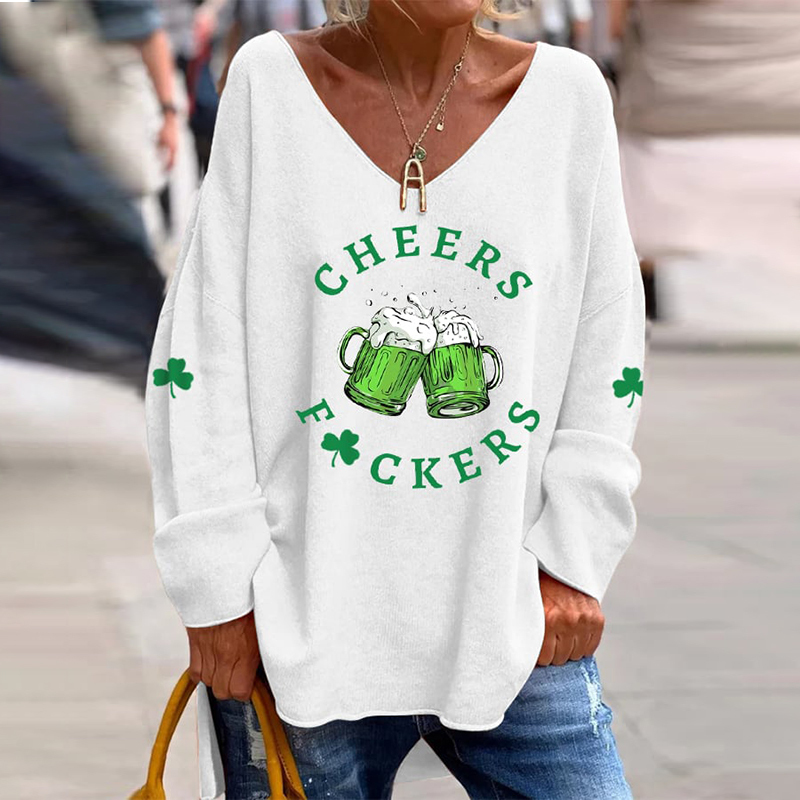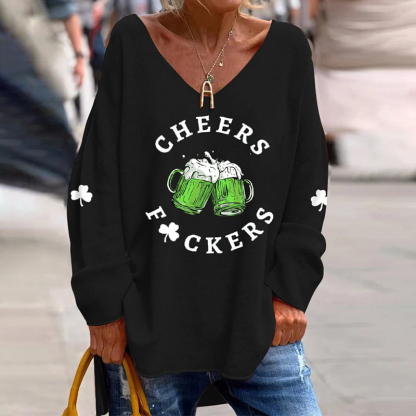 Women'S Funny St. Patrick'S Day Cheers Green Beer Shamrock Print V-Neck T-Shirt