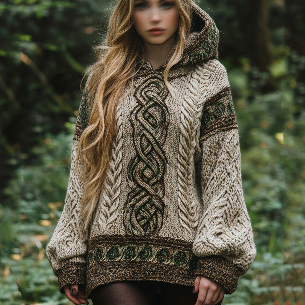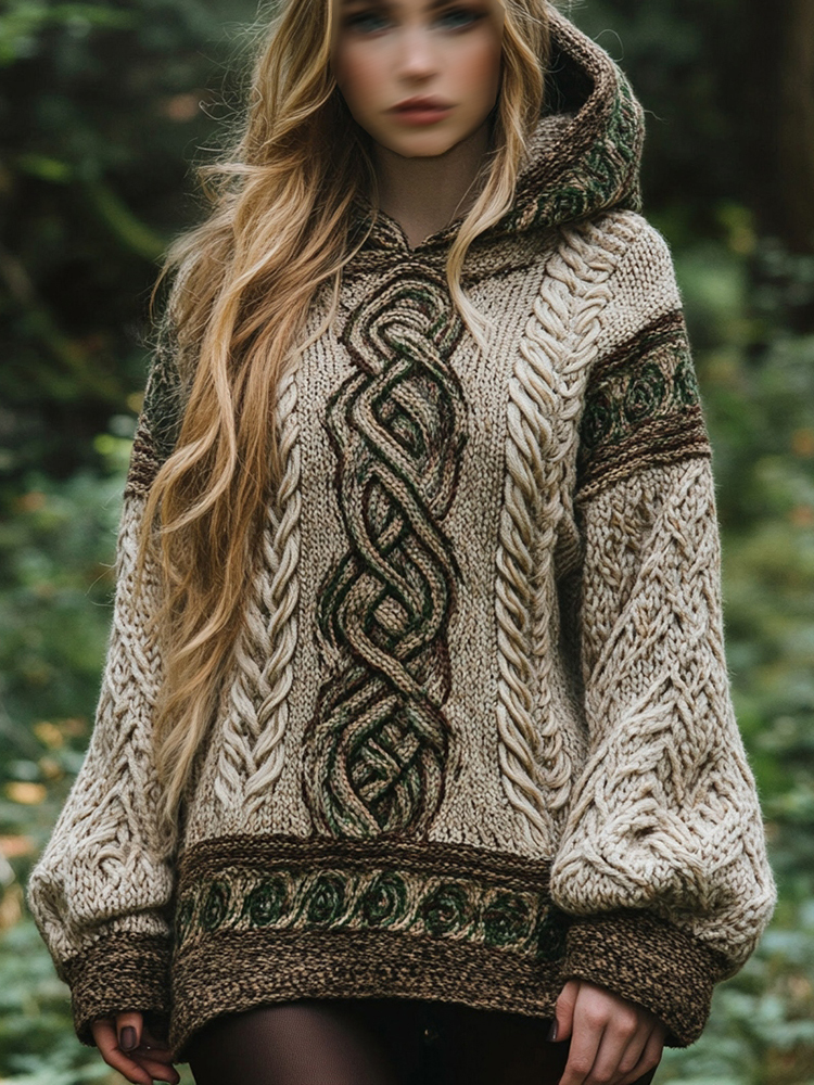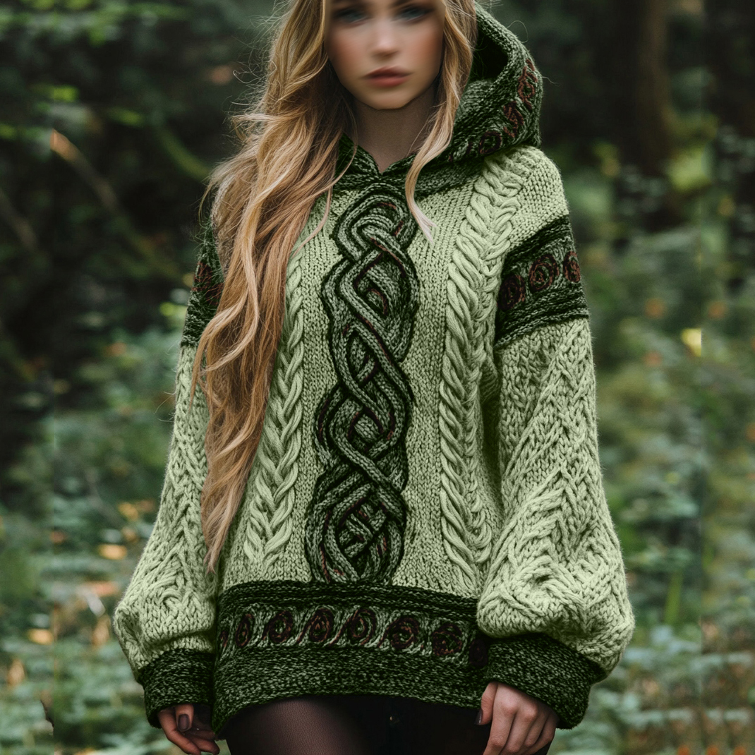 Women's Irish Celtic Knot Jacquard Hooded Sweater