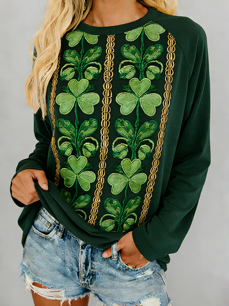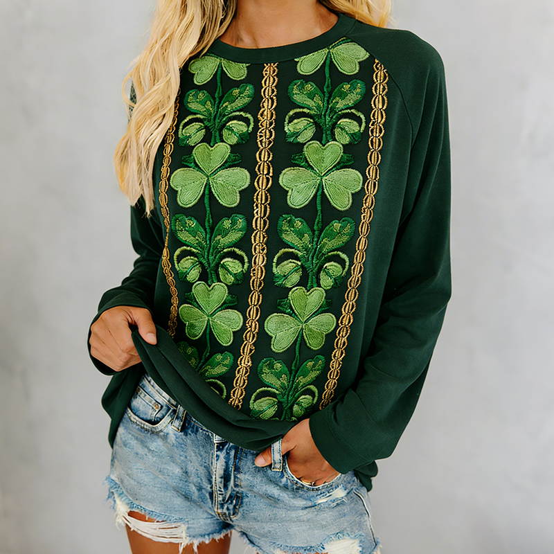 Women's St. Patrick's Day Shamrock Print Crew Neck Sweatshirt