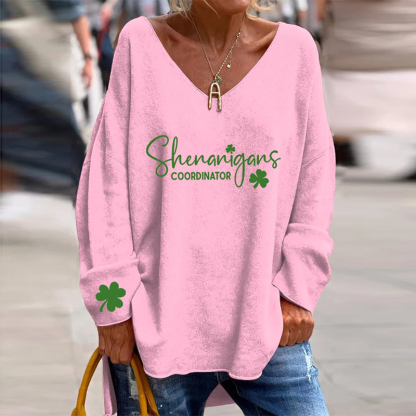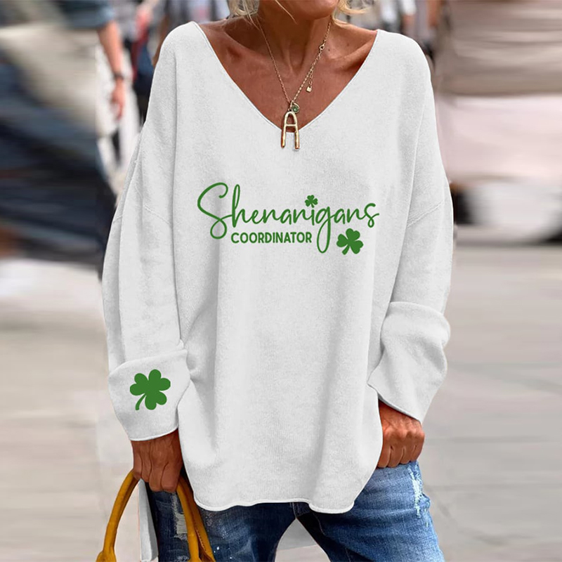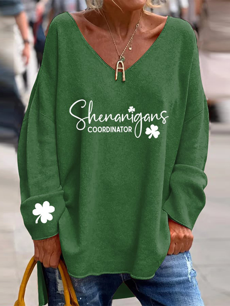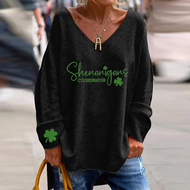 Women'S St. Patrick'S Day "Shenanigans Coordinator" Printed V-Neck T-Shirt