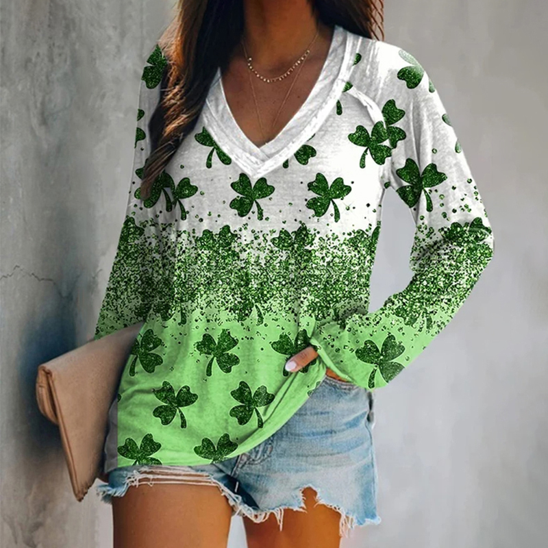 Women's St. Patrick's Lucky V-Neck Casual T-Shirt