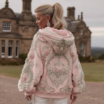 Women's Vintage Rose Embroidery Art Long Sleeve Hoodie