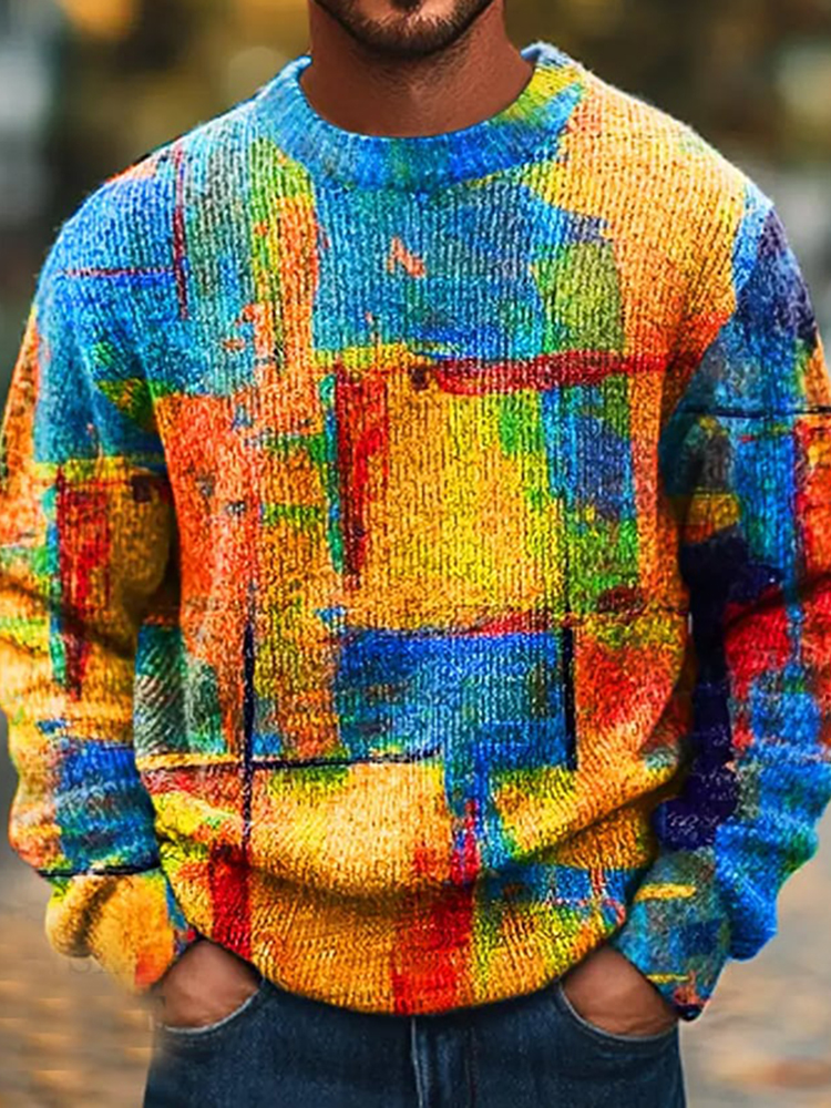 Men's Square Geometric Patchwork Cozy Sweatshirt