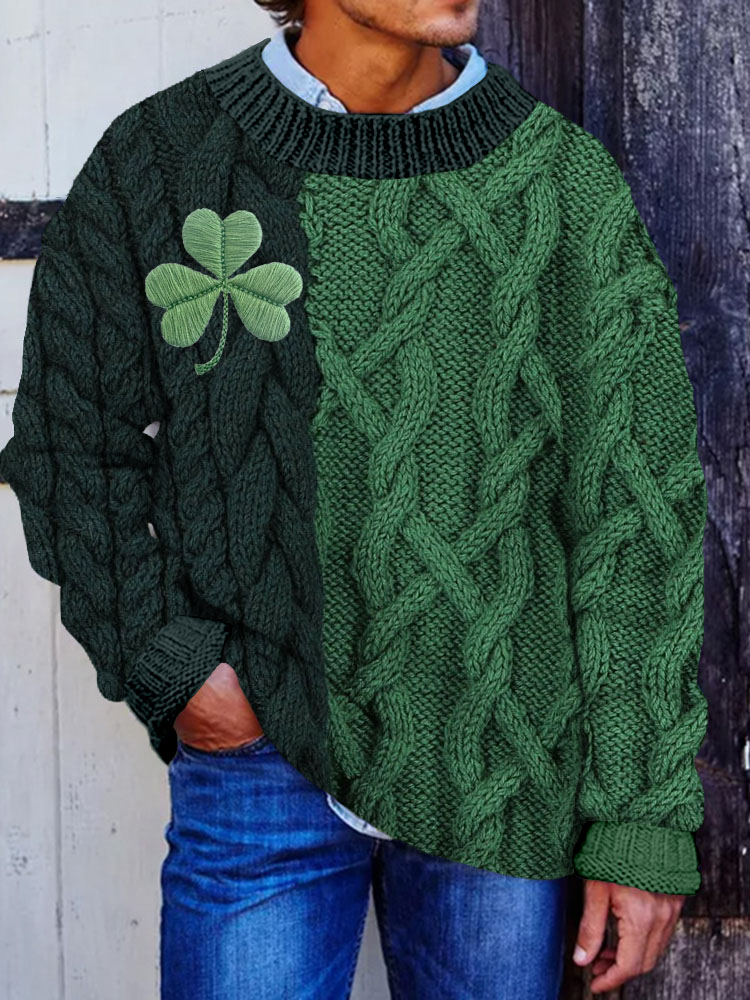 Men's Shamrock Celtic Jacquard Contrast Color Sweater
