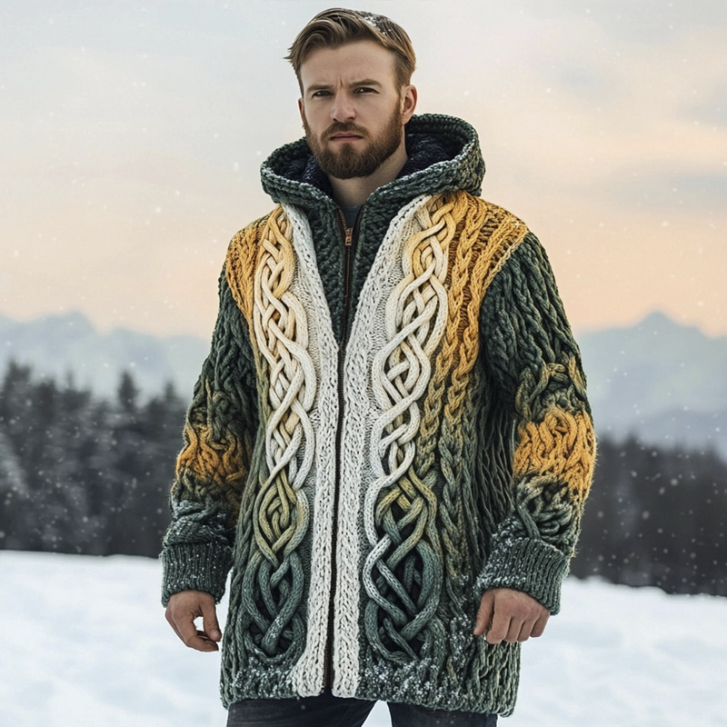 Men's Irish Celtic Jacquard Cozy Hooded Sweater