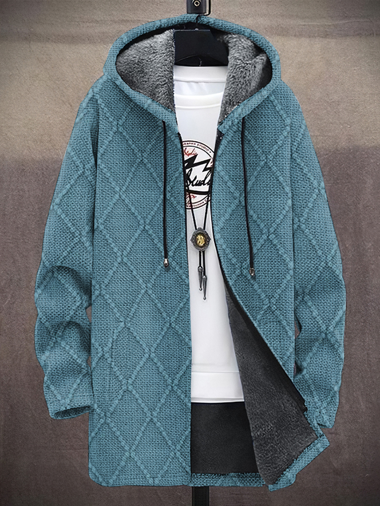 Men's Vintage Tribal Geometric Plush Warm Zip-up Hooded Sweatshirt