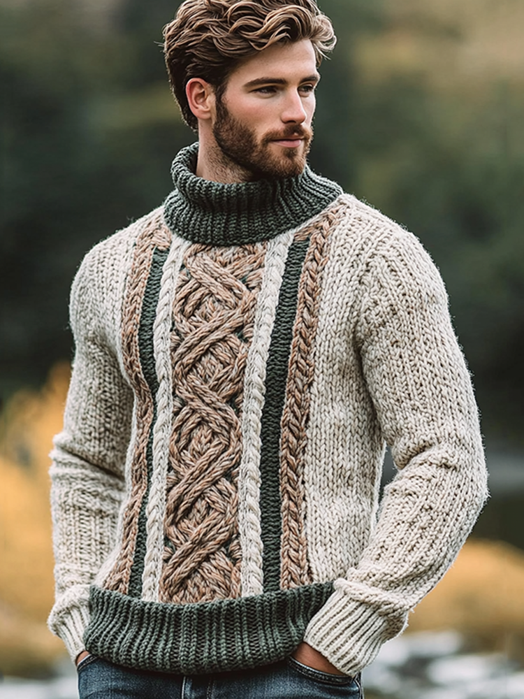 Vintage Irish Celtic Knotted Warmth Knit Jacquard Turtleneck Sweater