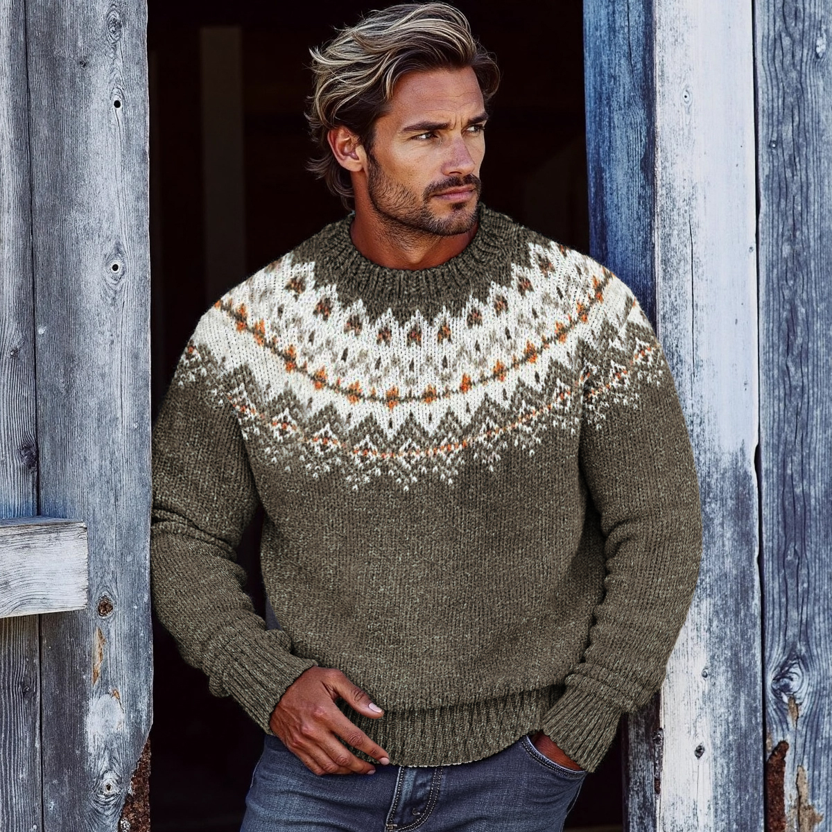 Mens Vintage Fair Isle Knitted Art Cozy Knit Sweater