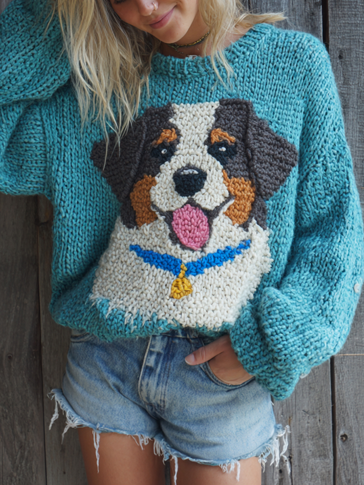 Fuzzy Bernesemountain Dog Felt Cozy Knit Sweater