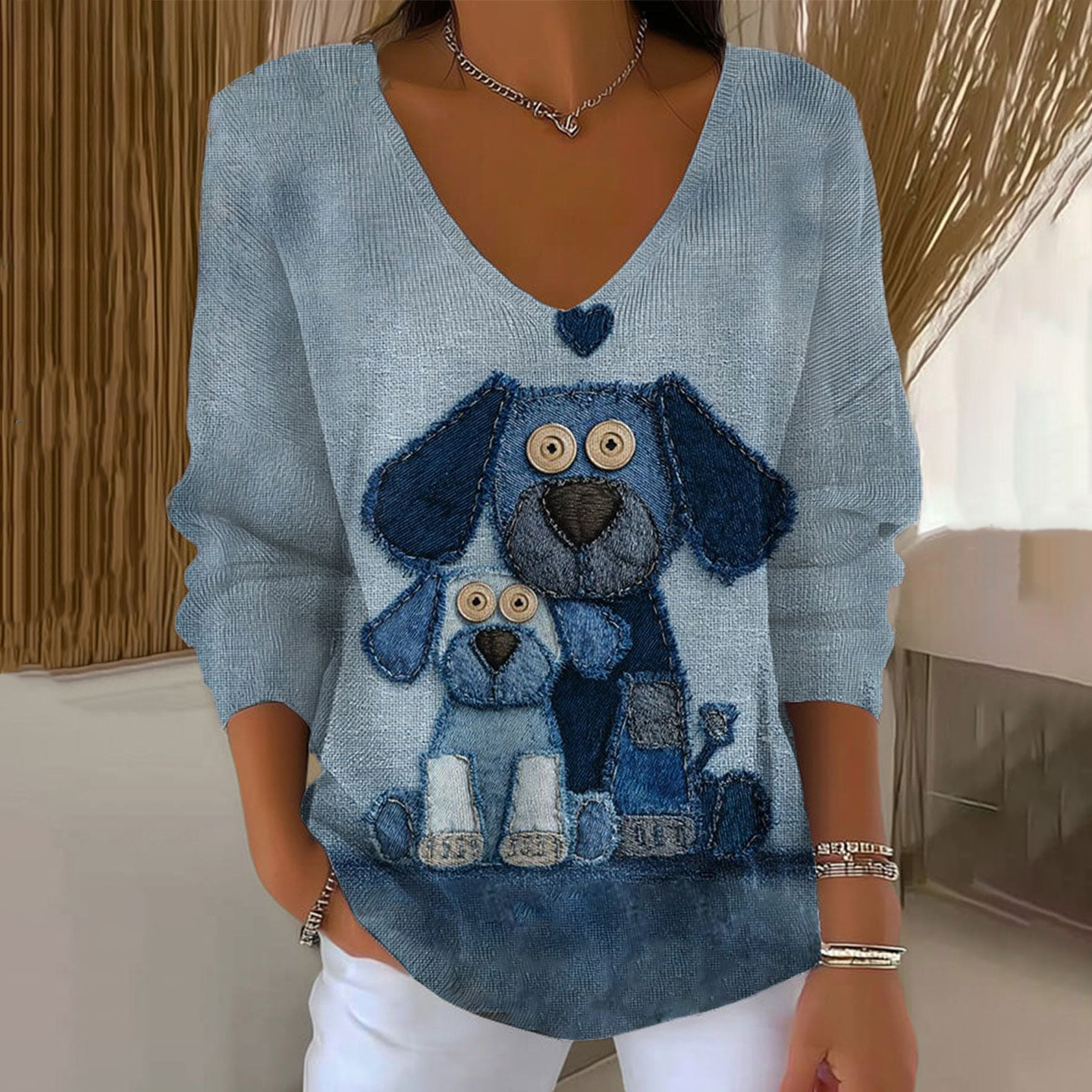 Women's Lovely Dog Art Print Casual Pullover Sweater