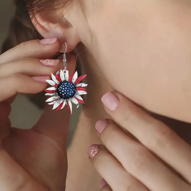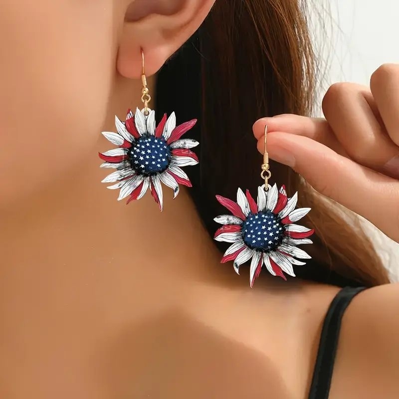 American Independence Day Sunflower Flower Art Earrings