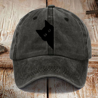 Japanese Art Black Cat Print Washed Sun Hat
