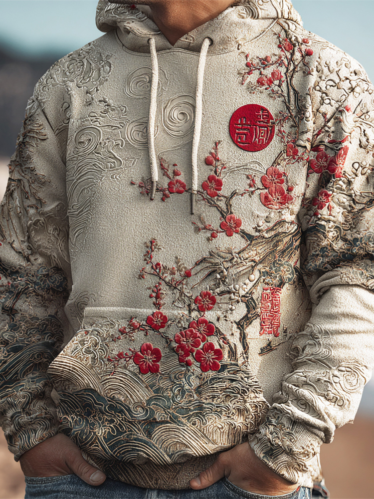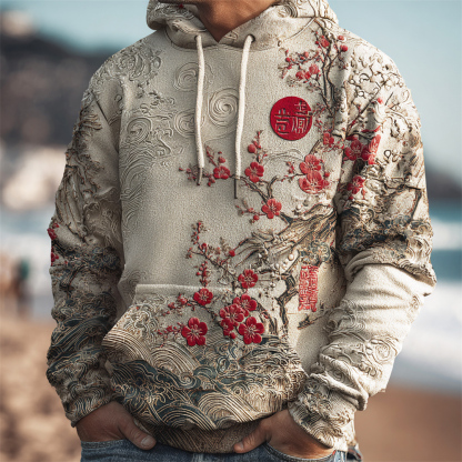 Japanese Floral Art Men's Hooded Sweatshirt