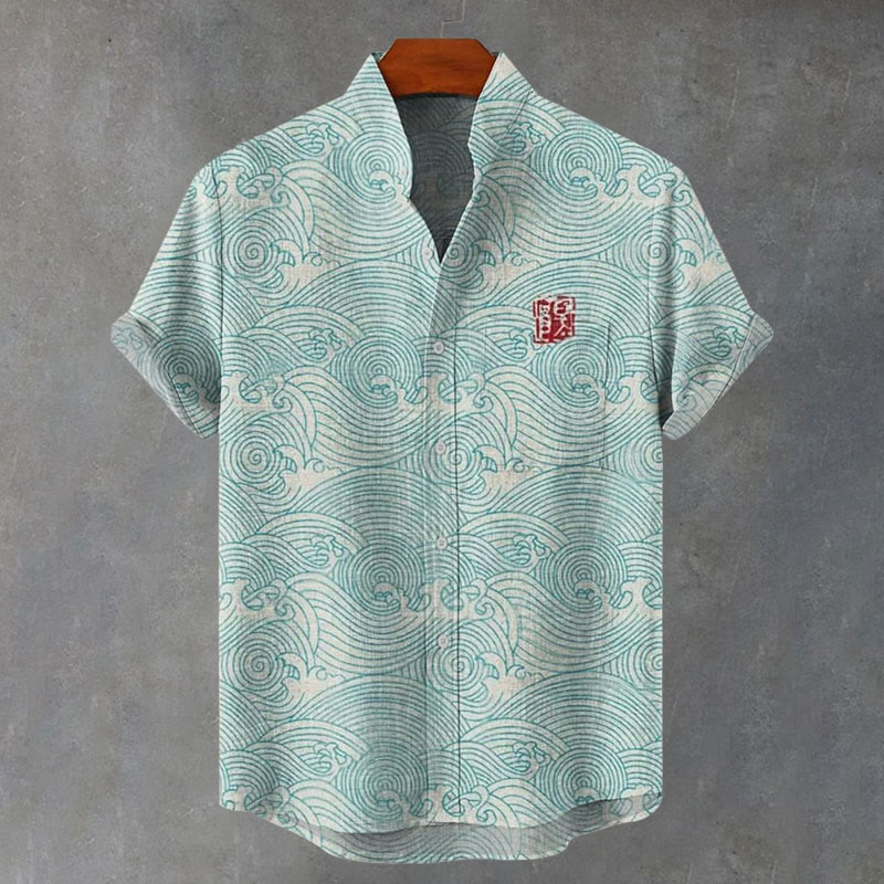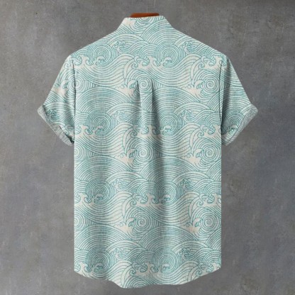 Japanese Wave Art Print Casual Shirt