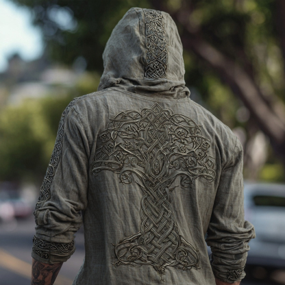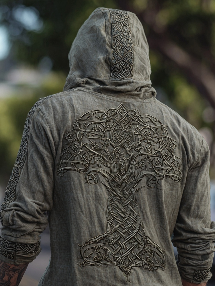 Mem's Viking Tree Of Life Celtic Cozy Linen Hooded Shirt