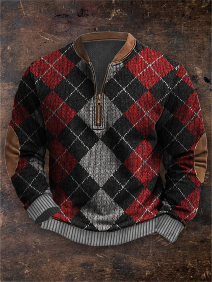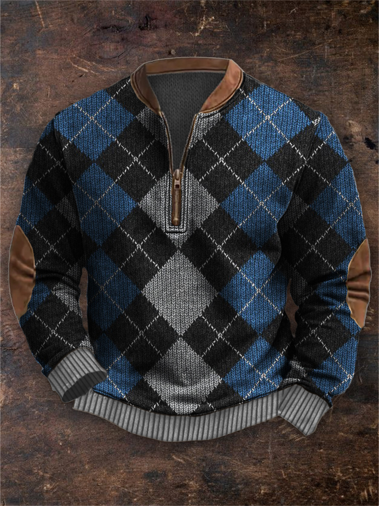 Men's Vintage 70s Argylle Pattern Knit Cozy Sweatshirt