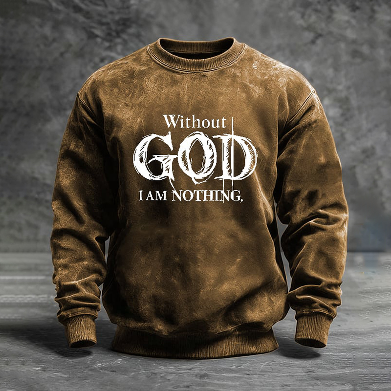 Men's Vintage Faith "without God I Am Nothing," Print Casual Sweatshirt