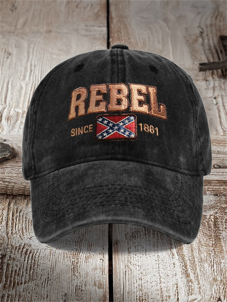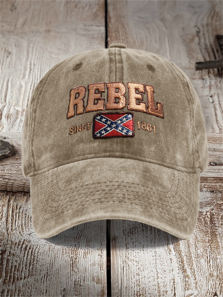 Rebel Since 1861 Rebel Flag Embroidered Washed Cap