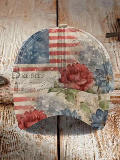 Unisex Independence Day Vintage Art Floral Print Hat