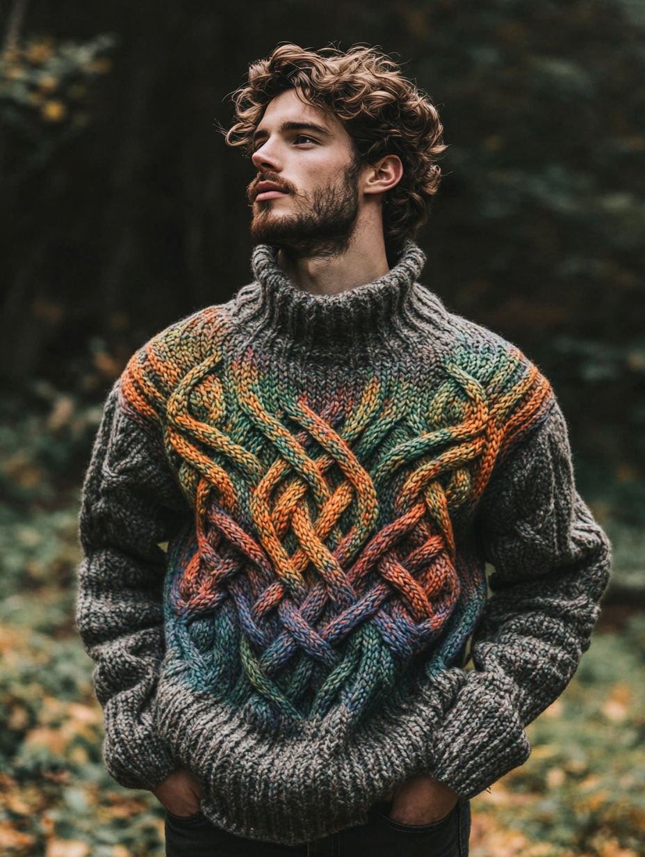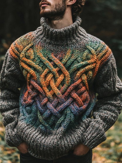 Vintage Rainbow Irish Celtic Knotted Warmth Knit Jacquard Turtleneck Sweater