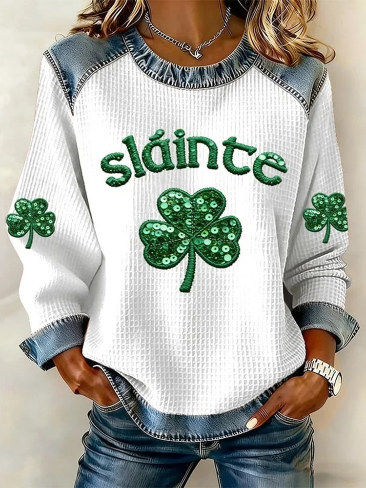 Women's St. Patrick's Day Clover Color Block Sweatshirt