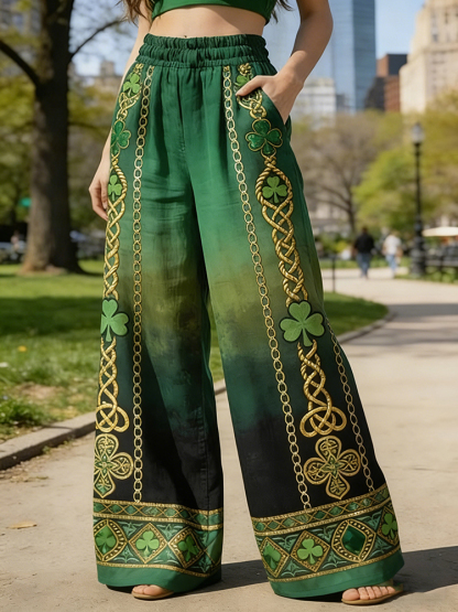 Women's St. Patrick's Day Shamrock Art Print Casual Pants