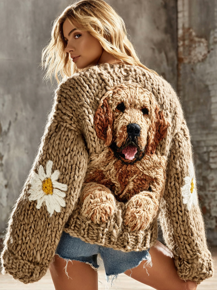 Lady Retro Cute Dog Plush Comfortable Knitted Sweater.