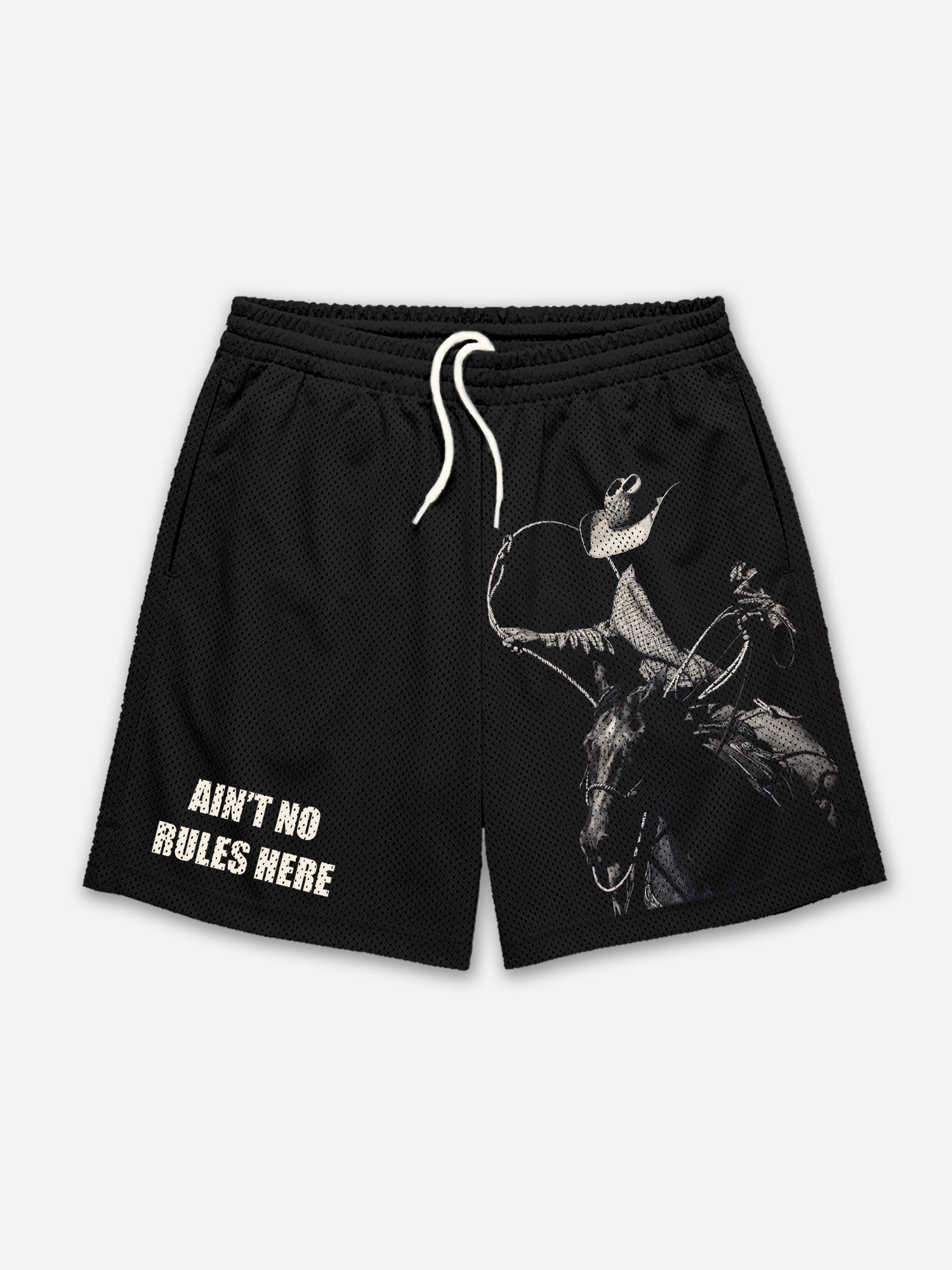Ain't No Rules Here Western Cowboy Graphic Mesh Shorts