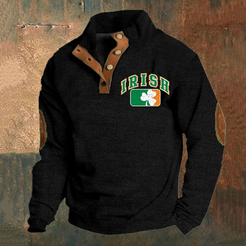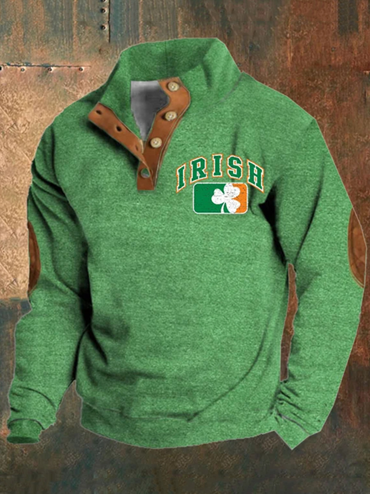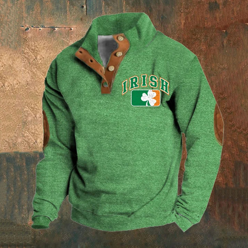 Men'S Irish St Patrick'S Day Print Button Casual Sweatshirt
