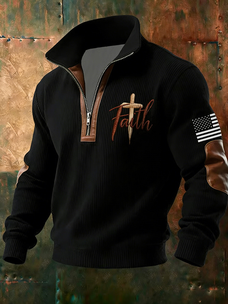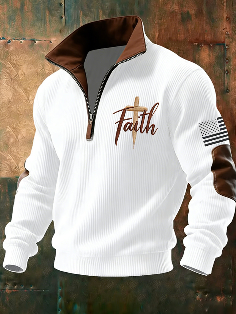 Men's Retro Faith Zip Fleece Collar Sweatshirt
