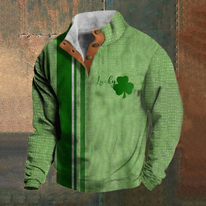 Men's St. Patrick's Day Design Printed Stand Collar Button-Up Sweatshirt