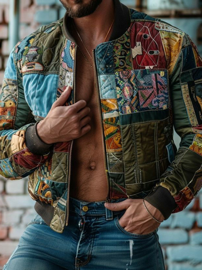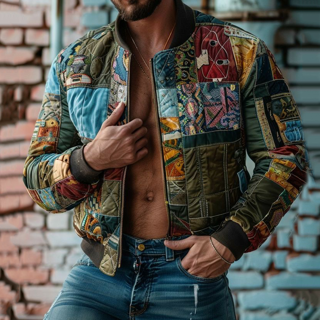 Men's Vingate Patchwork Art Cropped Zipper Flight Jacket
