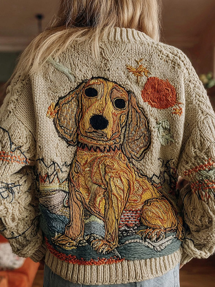 Women's Funny Dog Knitted Jacquard Crew Neck Sweater