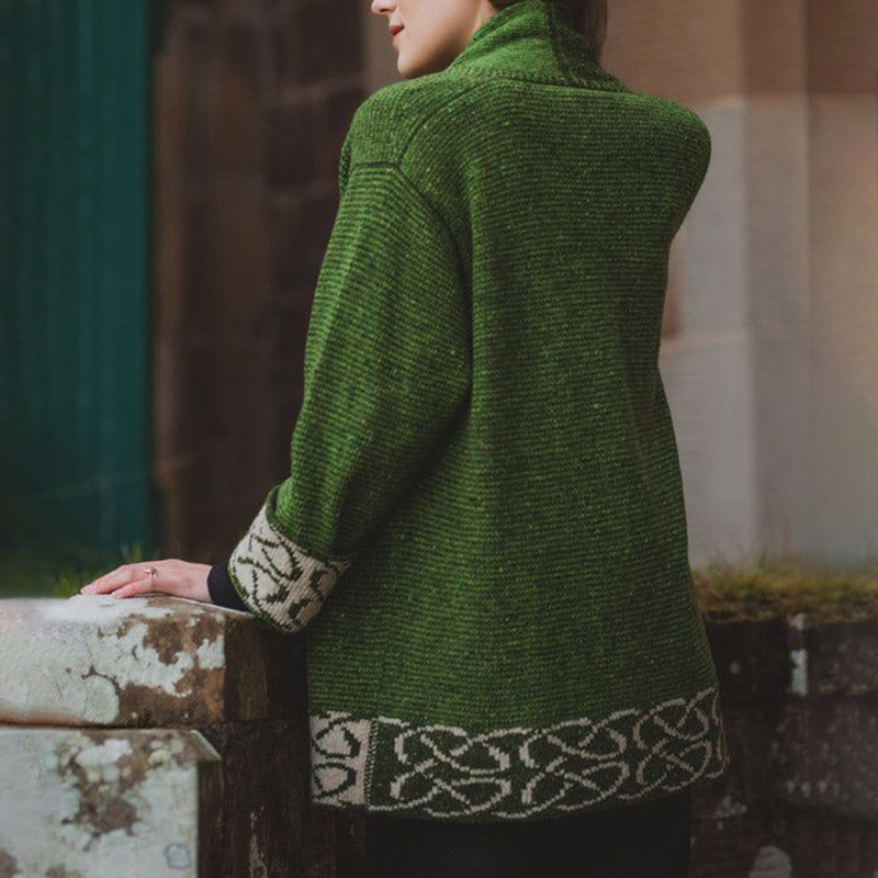 Women's Irish Celtic Knotted Contrast Jacquard Cardigan