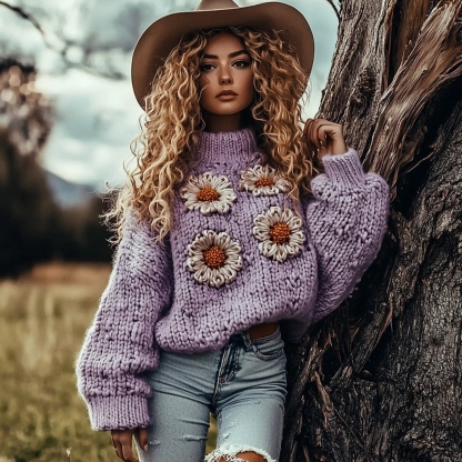 Women's Vintage Floral Cozy Turtleneck Sweater