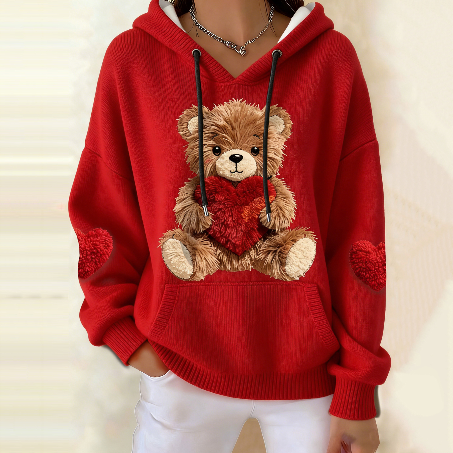 Women's Vintage Valentine's Day Teddy Bear Cozy Knit Sweater
